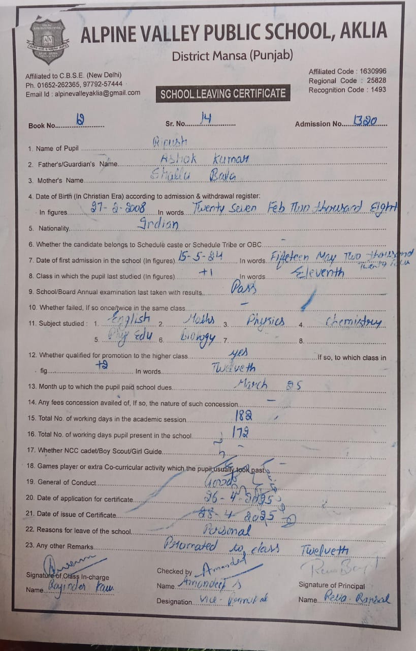 | 7 | Arshpreet singh | Kulwinder singh | Download File |