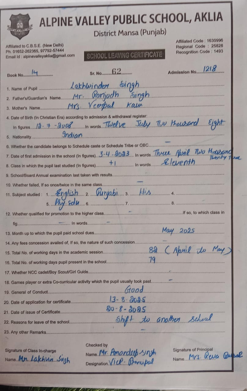 | 1 | Lakhwinder singh | Ranjodh Singh | Download File |